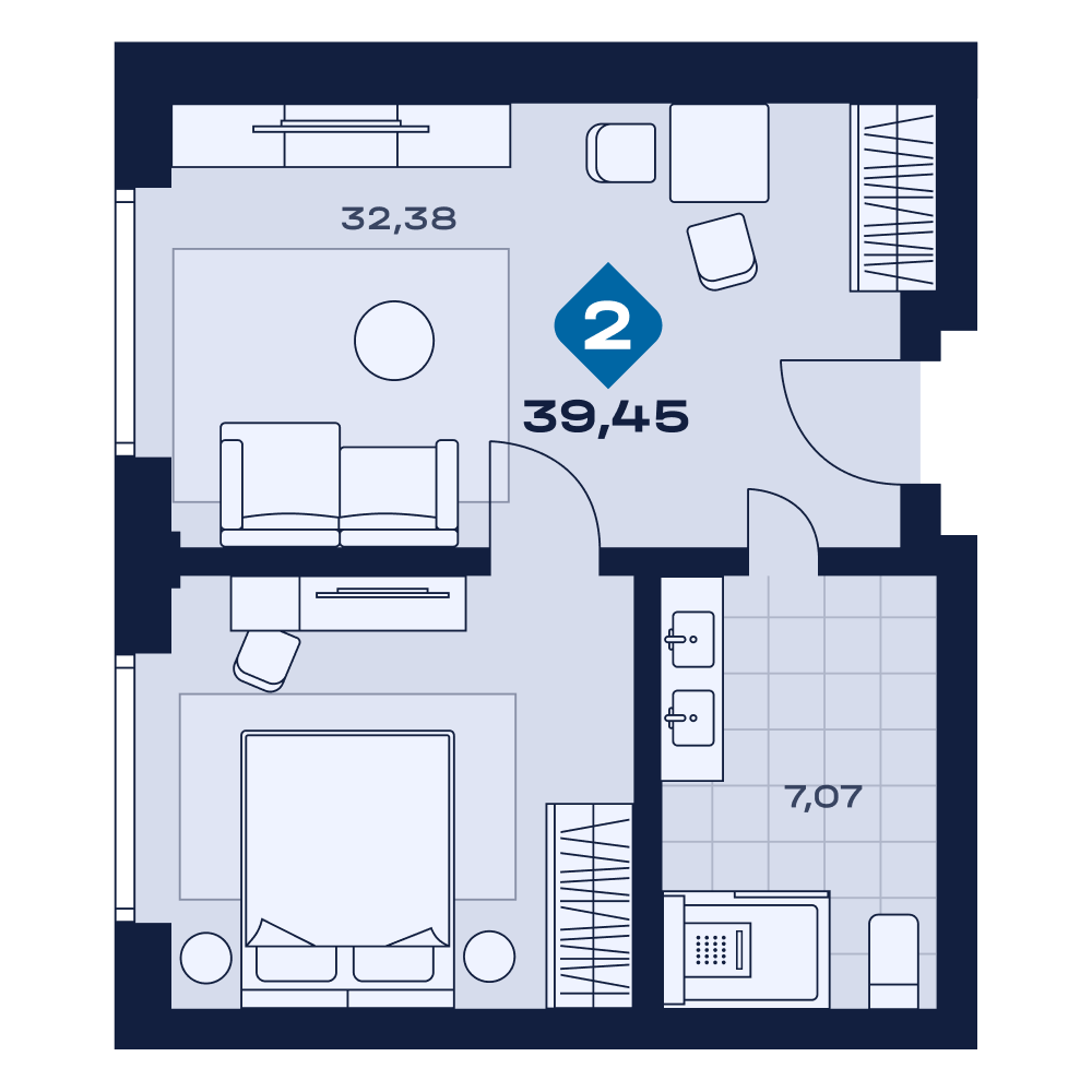 Апартаменты от 39,5 м²