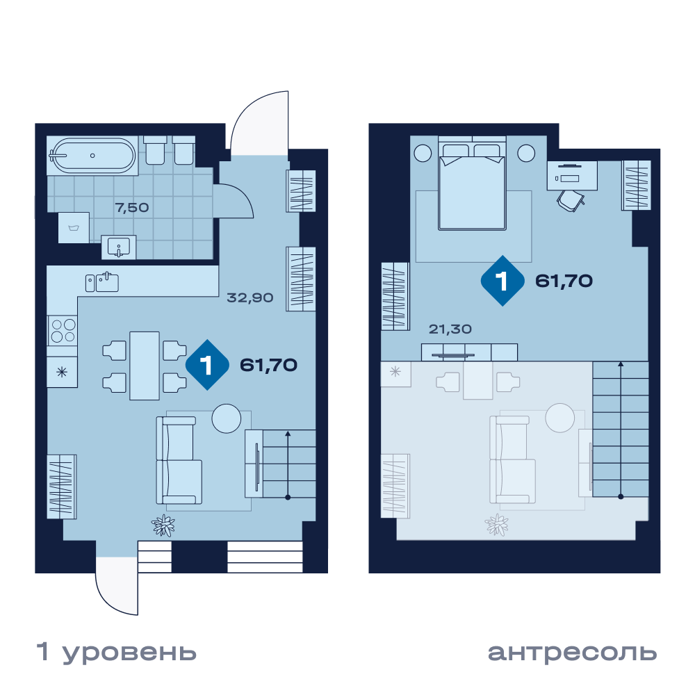 Апартаменты  61,7 м²