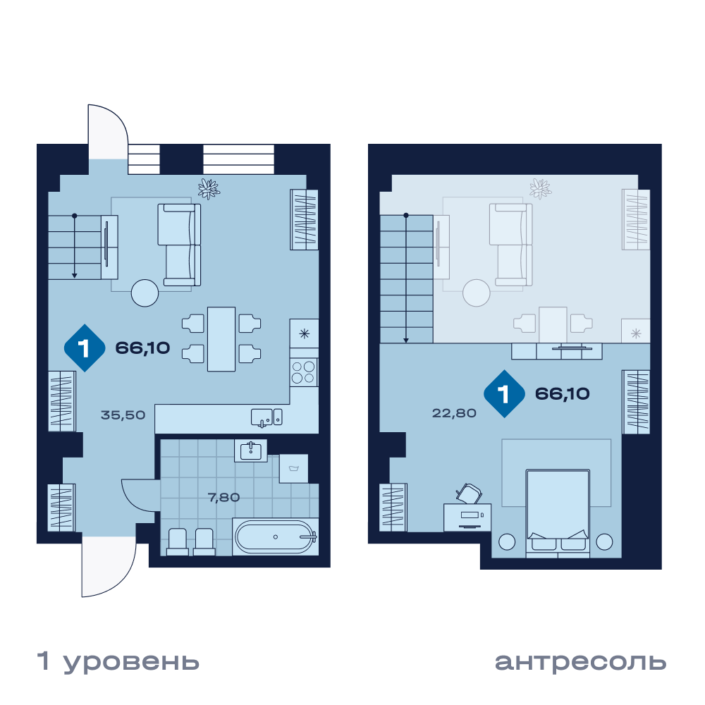 Апартаменты от 66,1 м²