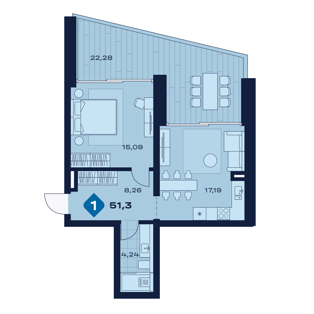 Апартаменты  51,3 м²