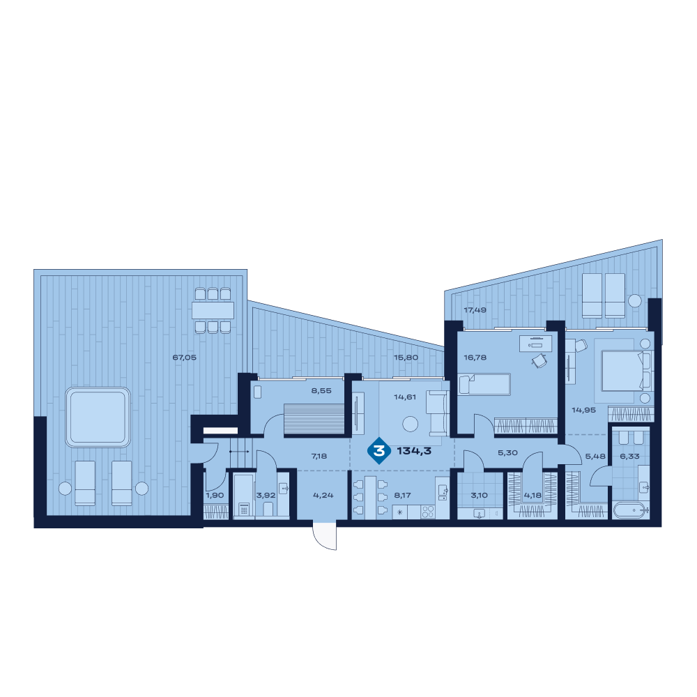 Апартаменты  134,3 м²