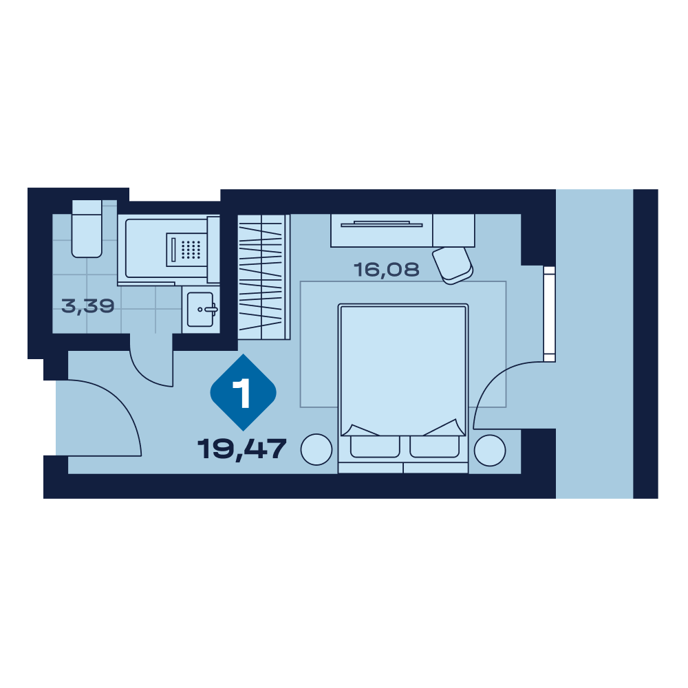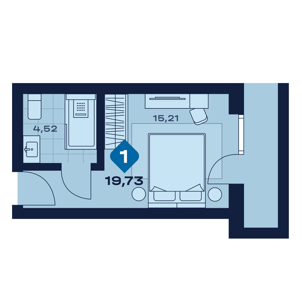 Апартаменты  22,42 м²