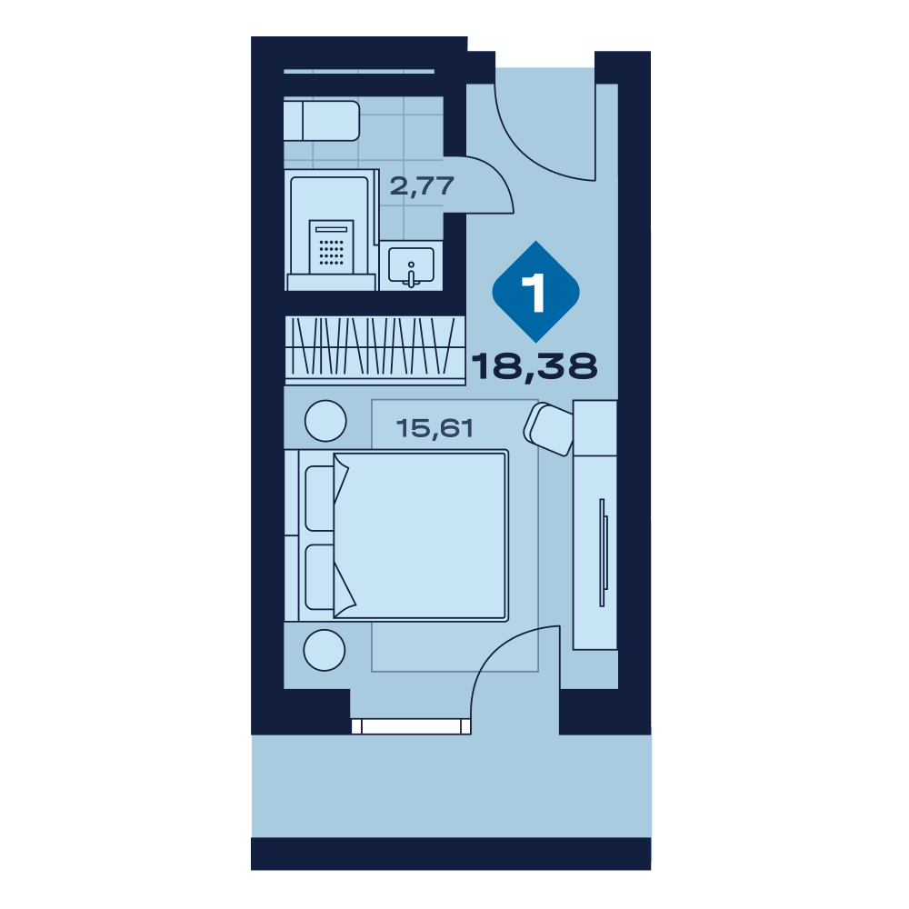 Апартаменты  18,38 м²
