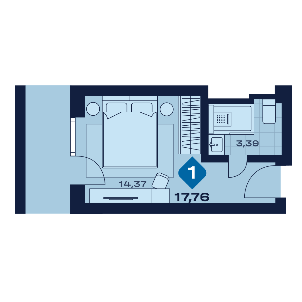 Апартаменты  17,85 м²