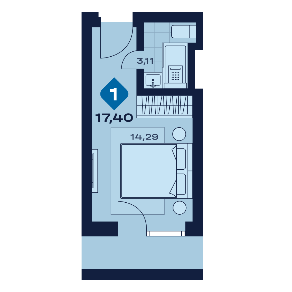 Апартаменты  17,4 м²