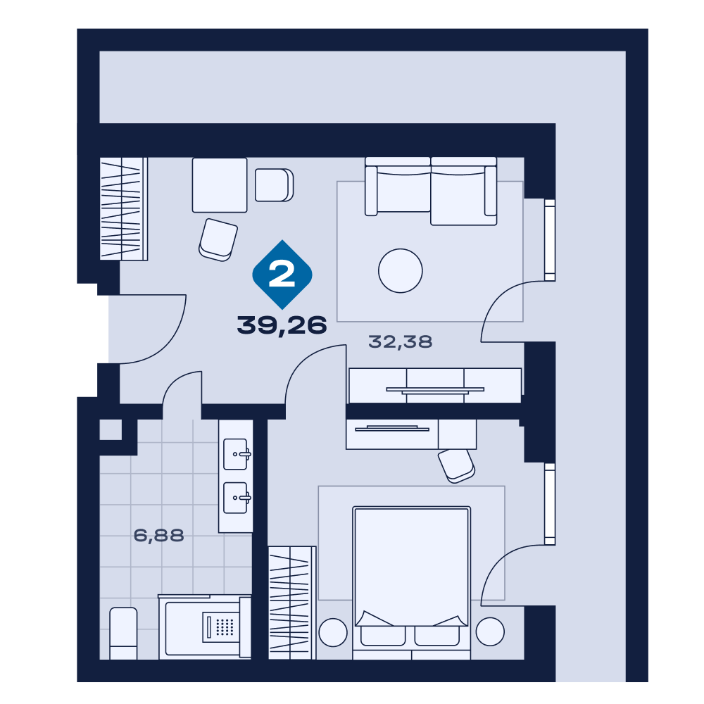 Апартаменты от 39,3 м²